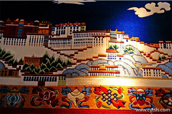 一種把佛像、民間故事、神話傳說等宗教圖畫搬到綢緞或布上的宗教畫。唐卡已有一千多年歷史,分為彩繪唐卡、貼花唐卡等不同種類。一幅出色的唐卡往往要數月或半年以上才能完成。游客可選購現成的,也可訂作。