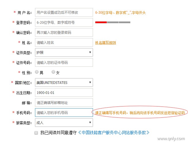 2、外國人自己注冊12306賬號的時候,需要輸入中國大陸的手機號,所以,目前僅限于在大陸工作或久居的外籍游客才能注冊成功,因為需要做手機號驗證碼接收,很多赴藏旅行的外籍沒有中國大陸手機號。如圖: