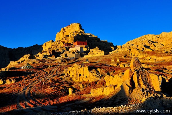 古格王國(guó)遺址在阿里札達(dá)肥札不讓區(qū)象泉河畔的一座土山上,占地約18萬平方米,是全國(guó)第一批重點(diǎn)文物保護(hù)單位之一。整個(gè)遺址建筑共有房屋洞窟300余處、佛塔(高10余米)3座、寺廟4座、殿堂2間及地下暗道2條,分上、中、下三層,依次為王宮、寺廟和民居。外圍建有城墻,四角設(shè)有硼樓。在其紅廟、白廟及輪回廟的雕刻造像及壁畫中不乏精品。