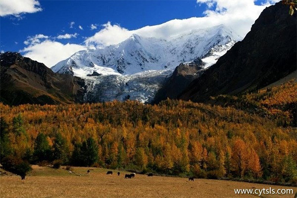 直入云霄的山脈披著冰雪的外殼,連綿起伏的雪山孕育了龐大的冰川,千百年來來古冰川帶著目酣神醉的景色對(duì)守護(hù)著它們的藏民做出了慷慨的回饋。