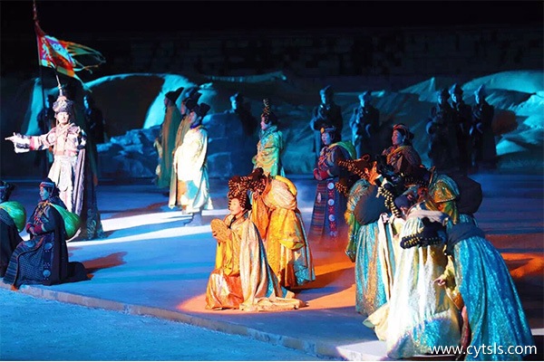 創(chuàng)作說明:最后一幕將整個實景劇再一次推向高潮。原生態(tài)的藏族歌舞、盛世大唐之音,交相映襯,又一次帶來漢藏文化交融的視聽盛宴。