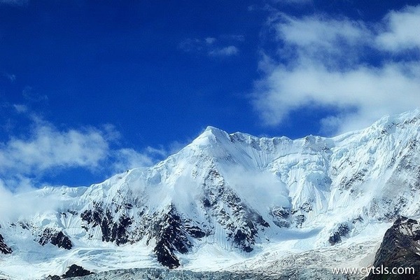 米堆冰川發育在源頭海拔6000米左右的雪山,雪山上有兩個巨大的圍椅狀冰盆。冰盆三面冰雪覆蓋,積雪隨時可以崩落,直立的雪崩槽如刀砍斧劈般,在幾個小時內就能觀察到三次雪崩。頻繁的雪崩是冰川發育的主要補給方式。冰盆中冰雪積聚多了,冰就會自已流出來,它以巨大的冰瀑布形式跌落入米堆河源頭冰盆地中,冰瀑布足有七八百米之高,景象奇特,氣勢宏偉,實屬世間少見,不由地贊嘆著大自然的造化!
