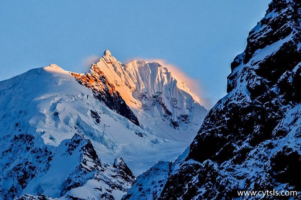 米堆冰川常年雪光閃耀,宛若高山上遨游的“寒龍”,在陽光照射下閃耀著幽幽的藍光,吸引著世界各地的人們。