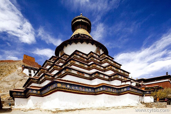 白居寺,藏語稱“班廓曲德”,意為“吉祥輪大樂寺”,位于西藏自治區日喀則江孜縣江孜鎮,南、北、東三面環山,寺院四面臨水,距拉薩南約230千米處,距日喀則東約100多千米,海拔3900米。是一座藏傳佛教薩迦派、夏魯派、格魯派共存的寺院。 白居寺始建于明宣宗宣德二年(1427年),歷時10年竣工。它是一座塔寺結合的典型的藏傳佛教寺院建筑,塔中有寺、寺中有塔,寺塔天然渾成,相得益彰,它的建筑充分代表了13世紀末至15世紀中葉后藏地區寺院建筑的典型樣式。 白居寺是一世班禪所建,所以相當的有名。