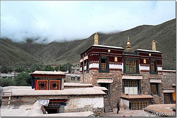 祖拉康二樓中間為天井,祖拉康二層有小佛殿五間和僧舍。德薩拉康供有嘎杰德希曲頂?shù)陌朔鹚偷诰糯喟拓暽M艿你y制靈塔等。謝耶拉康主供十六羅漢。白瑪旺杰拉康供第五代赤巴白瑪旺杰的靈塔。朗杰拉康供有鍍金佛像、銀制靈塔和手抄本《十萬般若經(jīng)》。祖拉康三層為德欽拉康、內(nèi)供洛欽·達瑪西日像;喇嘛拉康內(nèi)供貢卻桑布與歷代師祖及歷代達賴像。墻上繪有歷代寧珠派著名高僧像,如第一代大師釋迦瓊乃、第二代大師喜繞扎巴、第三代大師卓普巴、釋迦僧格、寧瑪派班智達絨松巴·卻吉桑波等等。敏珠林寺除主要建筑祖拉康外,還有曲果龍布拉康。第一層為經(jīng)堂,主供德達林巴鍍金像、壁畫為十方佛;第二層供鍍金十一面觀音像;第三層為歷代高僧臥室等。