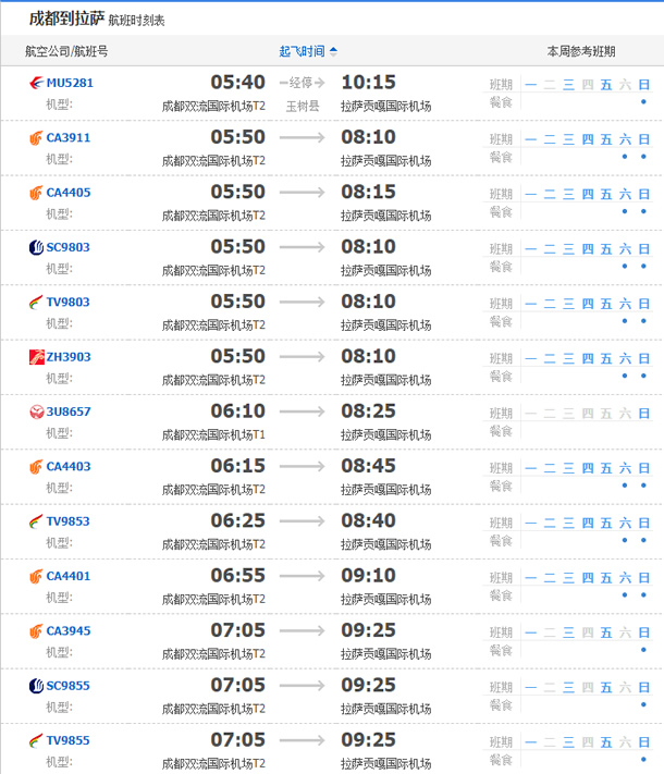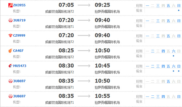 以上就是成都飛拉薩的航班時(shí)刻表,起飛時(shí)間,到達(dá)時(shí)間,及固定航班日期。