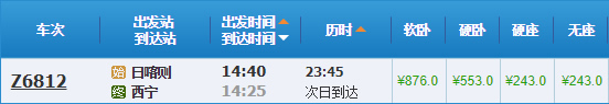 以上就是日喀則至西寧Z6812次火車的發車時間,到達時間,運行時間,行程公里數,途徑站及火車票價格。